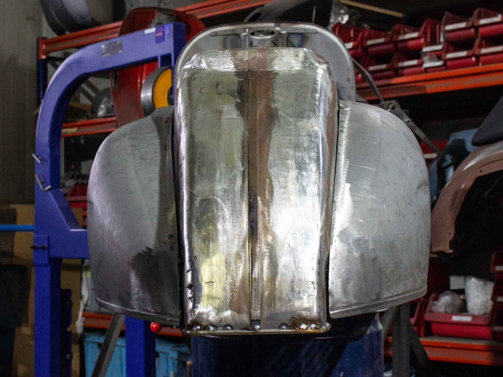 Custom Vespa auf Basis einer PX Karosse im VNB-Style mit 244ccm-Quattrini Motor in Piaggio Azzurro Metallizzato 114 Rawstyle.
