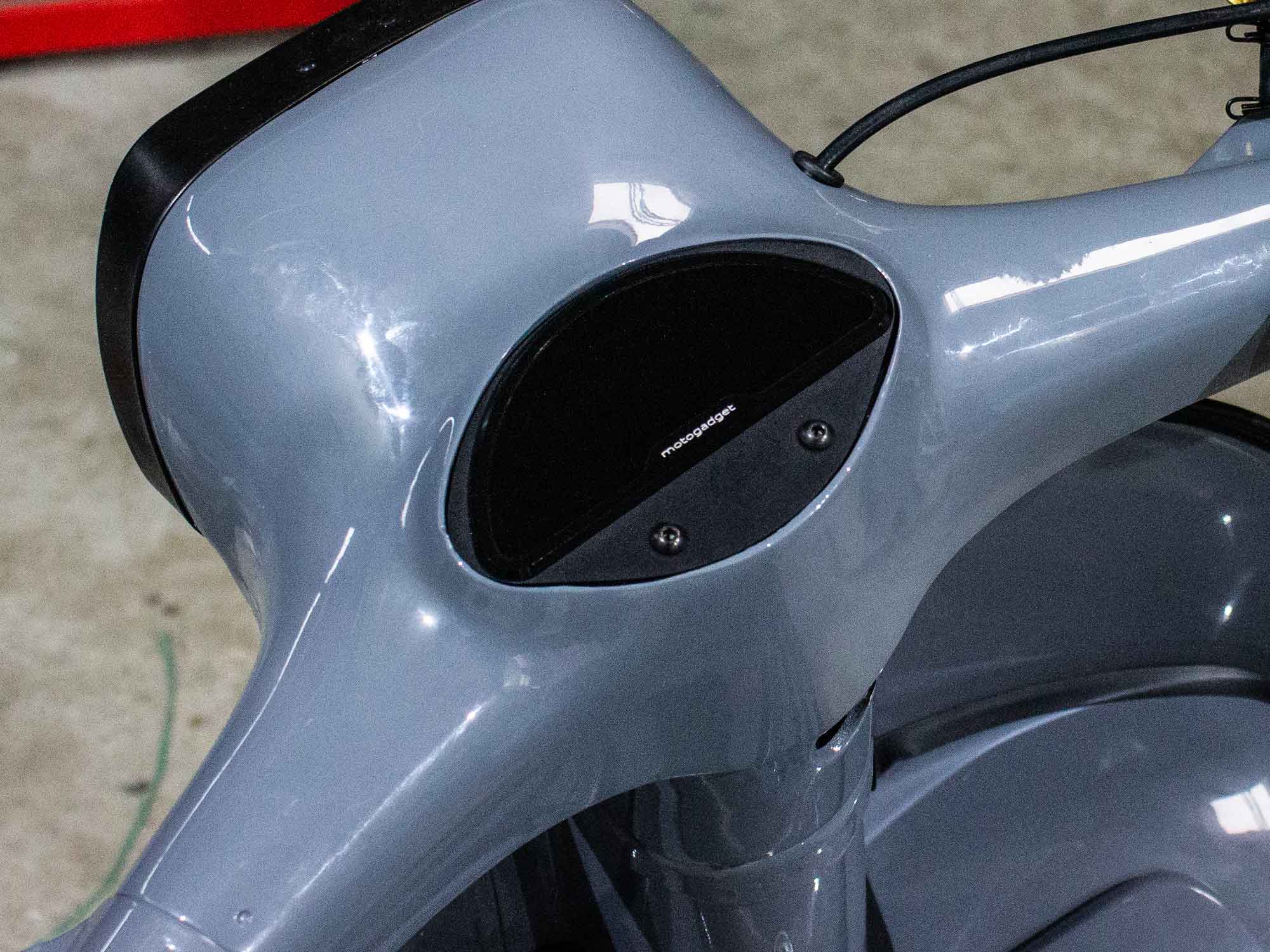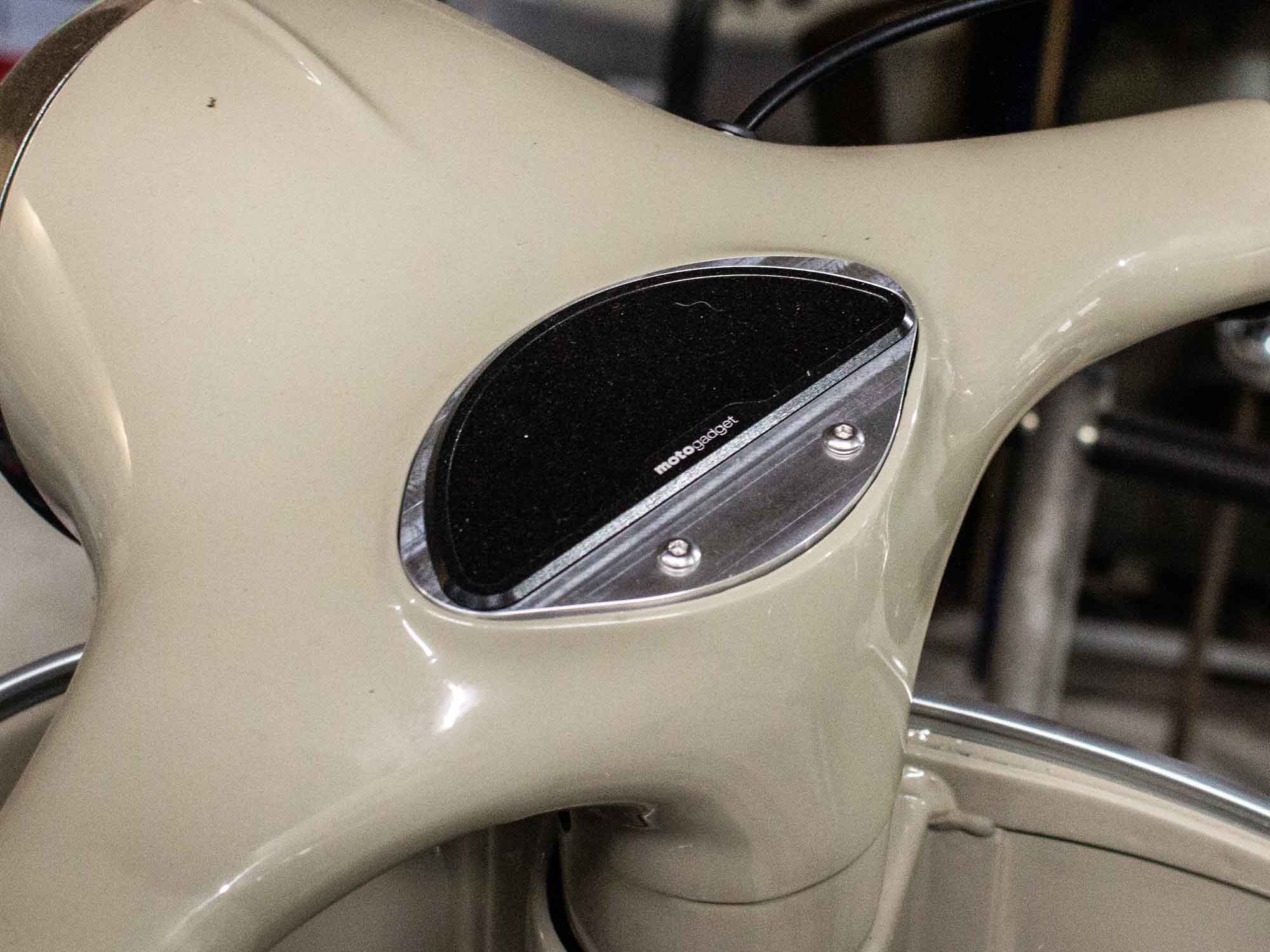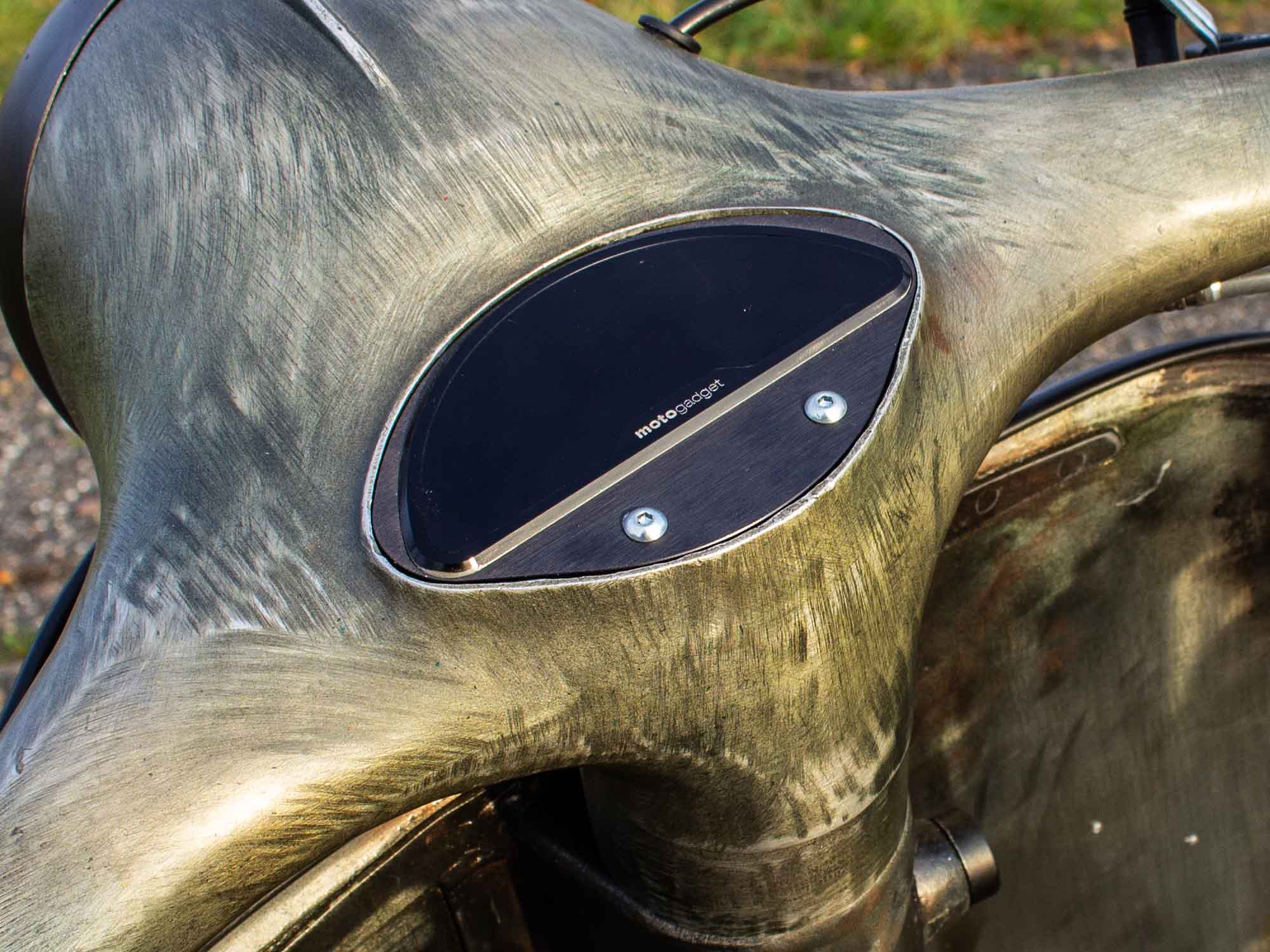 Für den Umbau eines Vespa Lenkers auf ein Motogadget Motoscope Pro Instrument muss ein muschelförmiger Tachoausschnitt vorhanden sein.