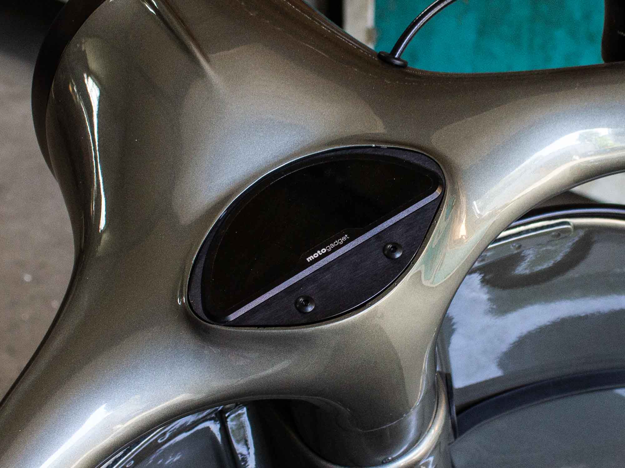 Das Motoscope Pro ist ein digitales Multi-Instrument des Herstellers Motogadget und kann neben der Anzeige von Geschwindigkeit und Drehzahl verschiedene Kontrollleuchten-Funktionen übernehmen - Tageskilometer-Zähler, Speichern der höchsten Geschwindigkeit, Sprint-Messung usw. sind ebenfalls im Grund-Setup enthalten.