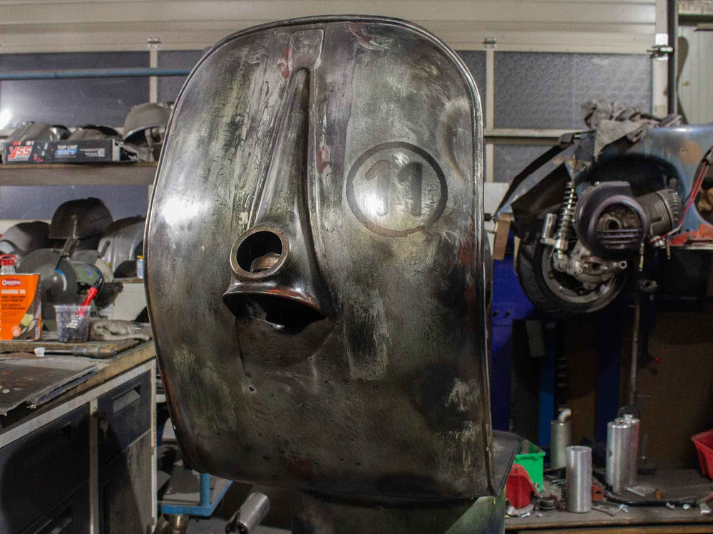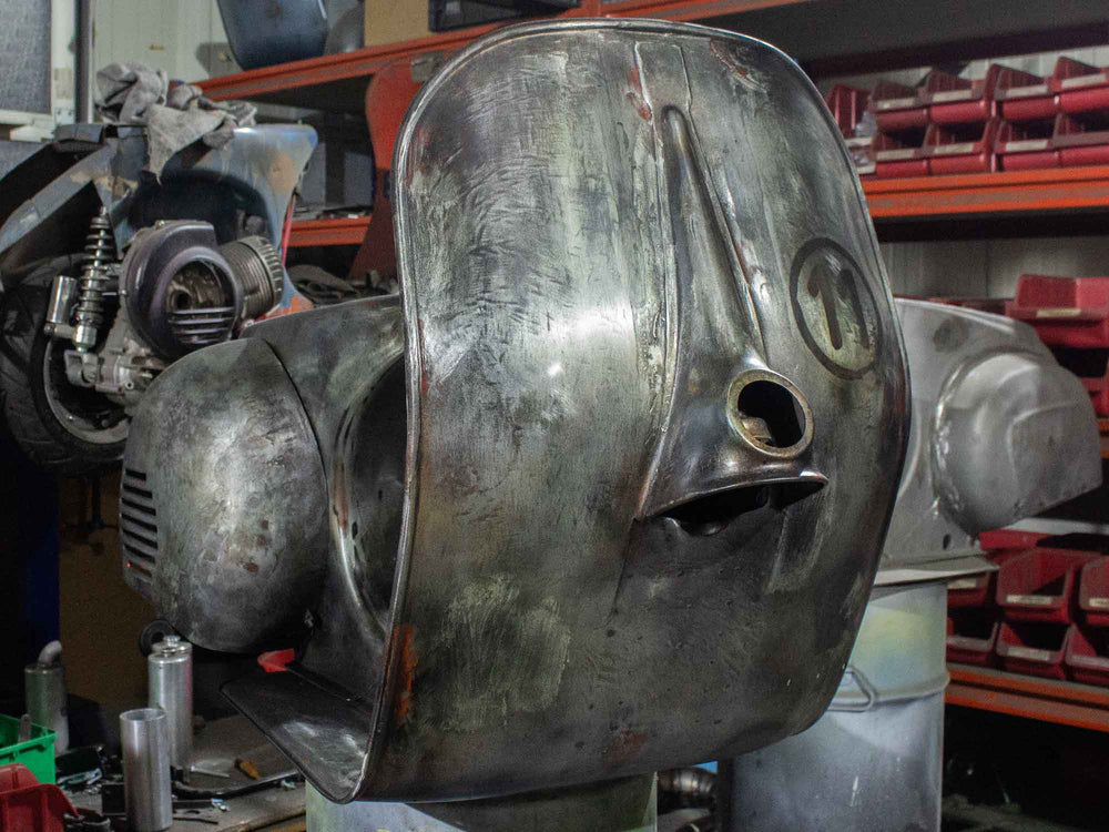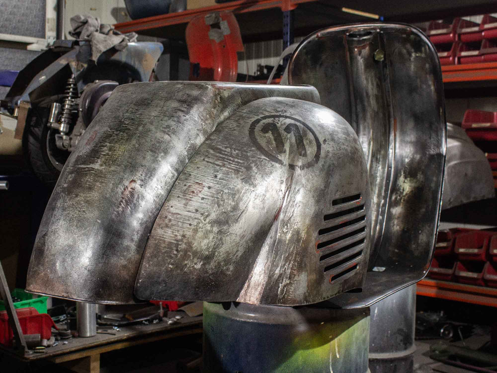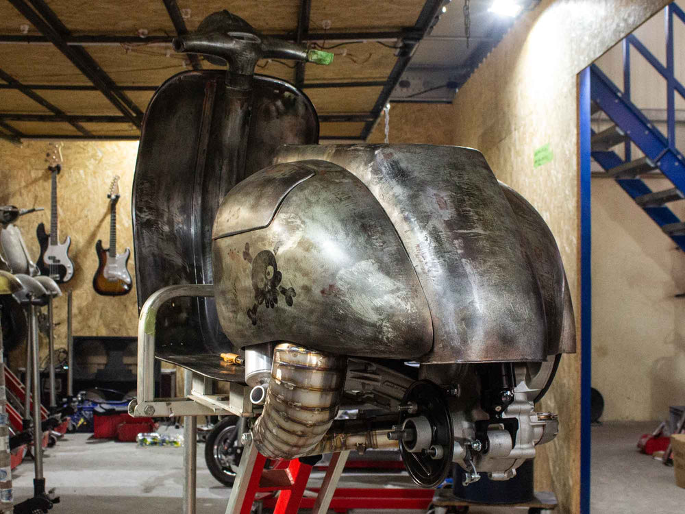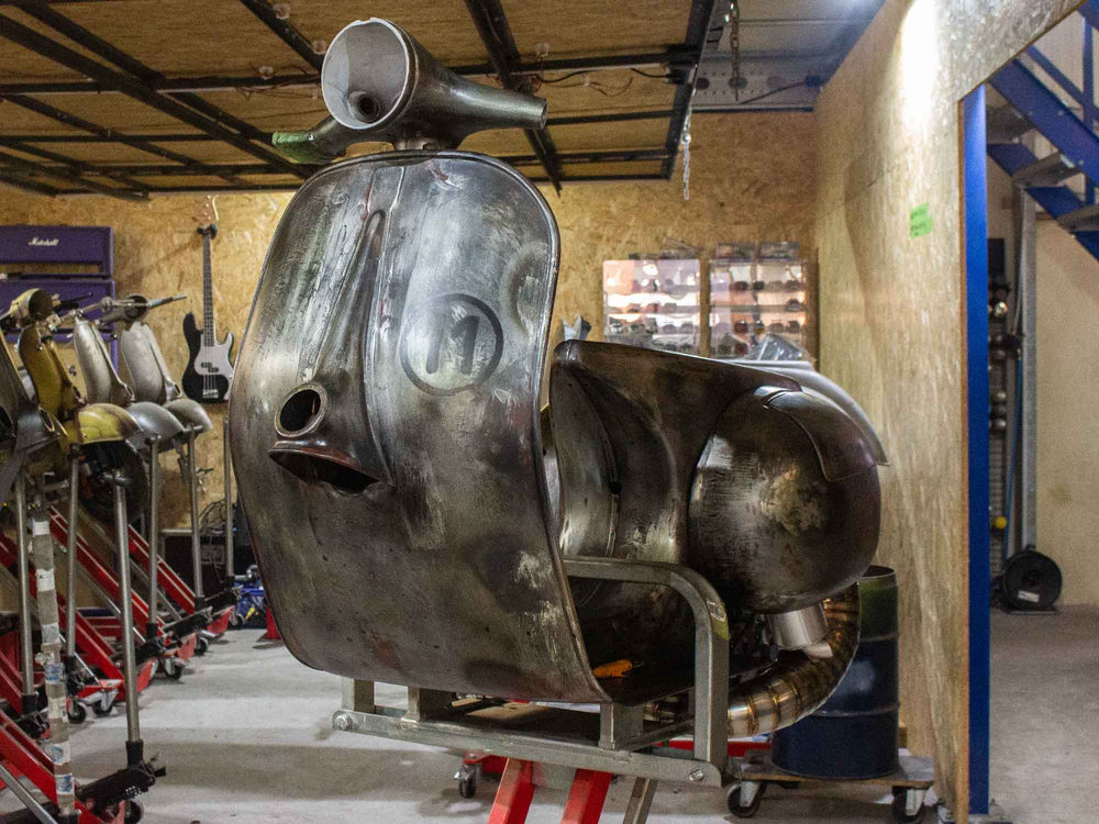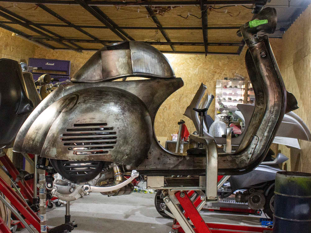Superlow Series Custom Vespa mit GS 3 Seitenhauben und dezentem Heck-Cut.