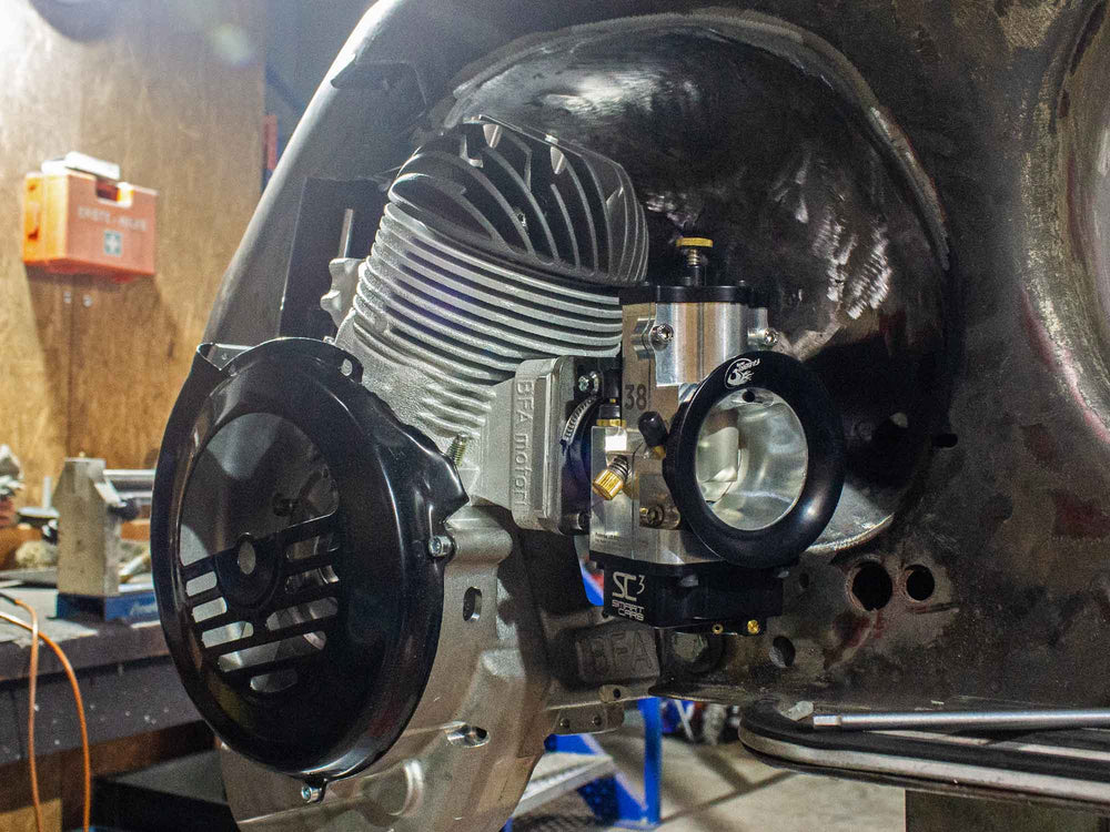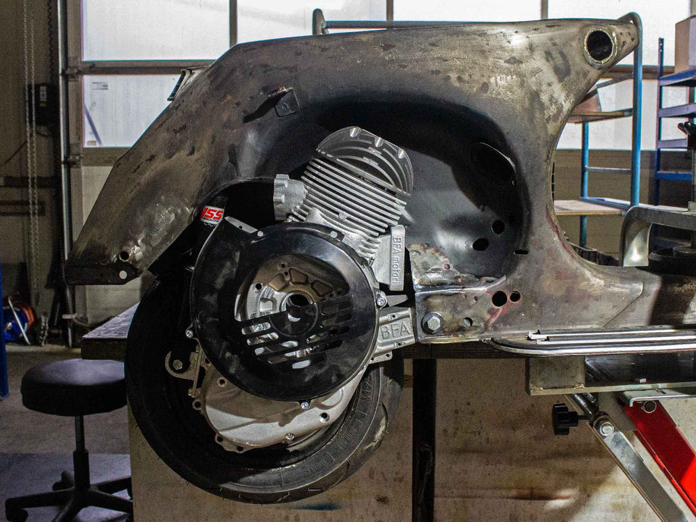 Vespa PX Rawstyle Projekt mit BFA 288ccm Smallframe Motor und Curley Auspuff.
