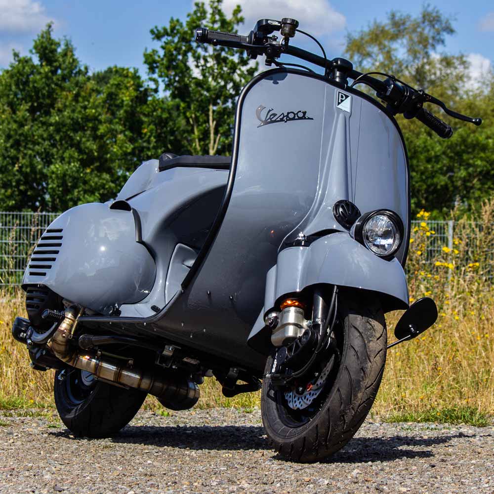 Die wählbaren Konfigurationen und Setups basieren sämtlich auf den von uns entwickelten und vielfach erprobten Motor- und Fahrwerks-Konzeptionen und sind für bestmögliche Fahrbarkeit im Straßen- und Touren-Betrieb ausgelegt - eine Vielzahl unserer Eigenentwicklungen und Vespa Custom Parts sind bereits in der Grundausstattung der Konfiguration enthalten.