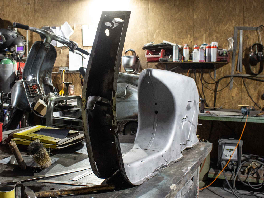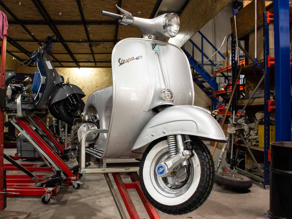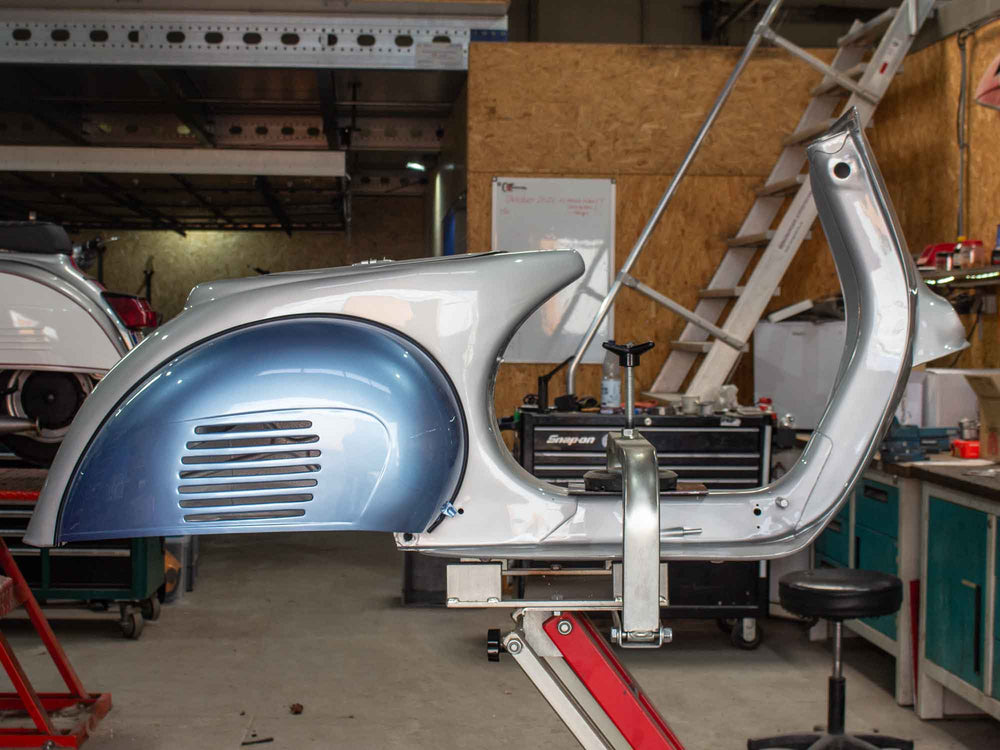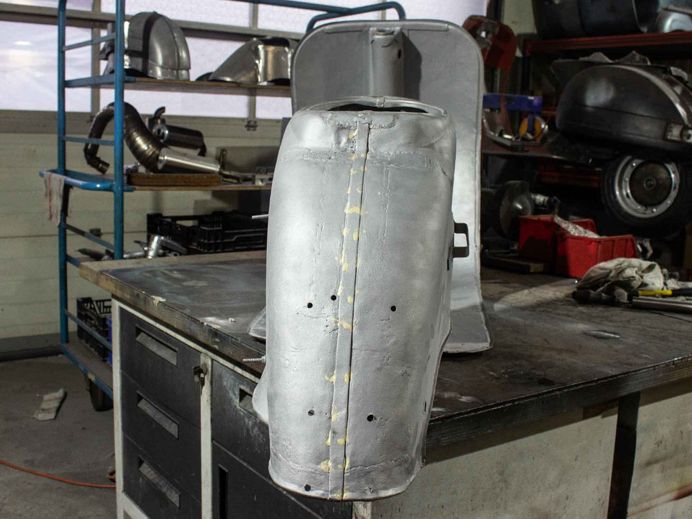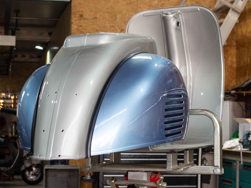 Restauration einer Vespa VBB auf Basis einer wirklich schlechten Blech-Substanz - viel Arbeit für unsere Blech-Werkstatt - das Ergebnis im dezenten Mod-Style kann sich vor diesem Hintergrund wirklich sehen lassen!