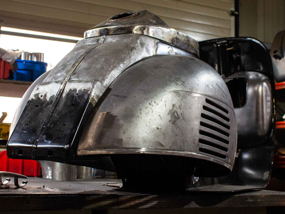 Custom Vespa Projekt aus unserer Superlow Series mit 244ccm Quattrini Motor, Curley Auspuff System und Sitzbanktank.