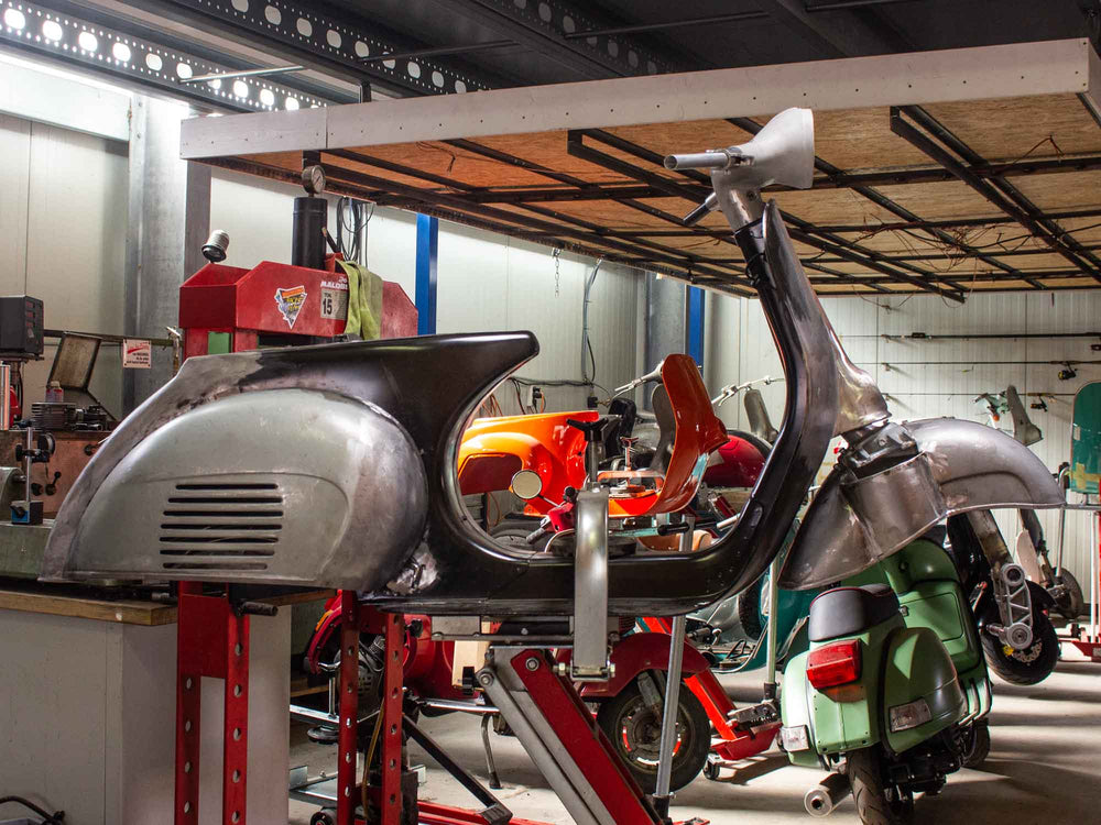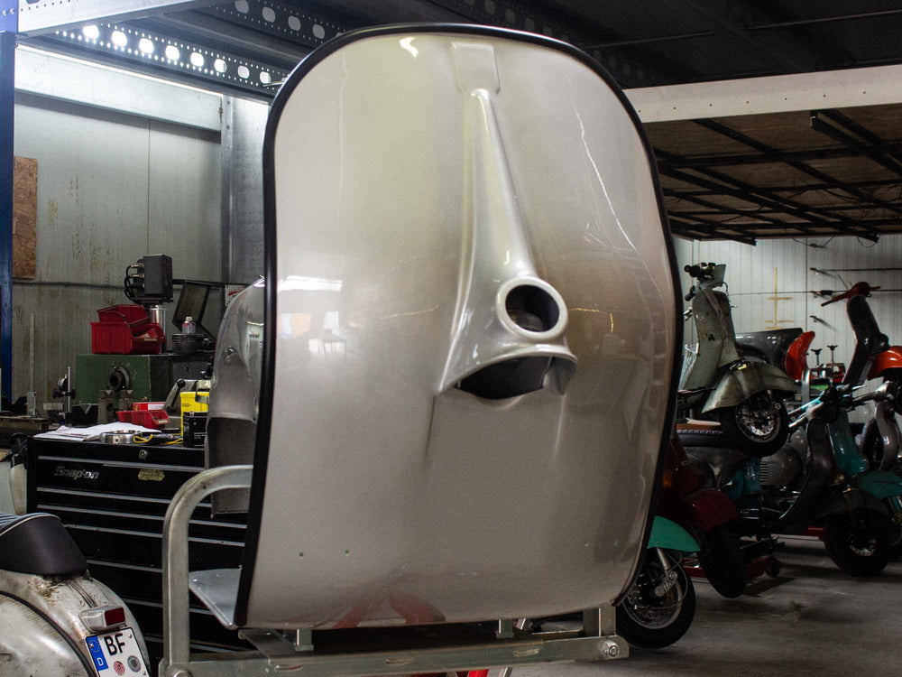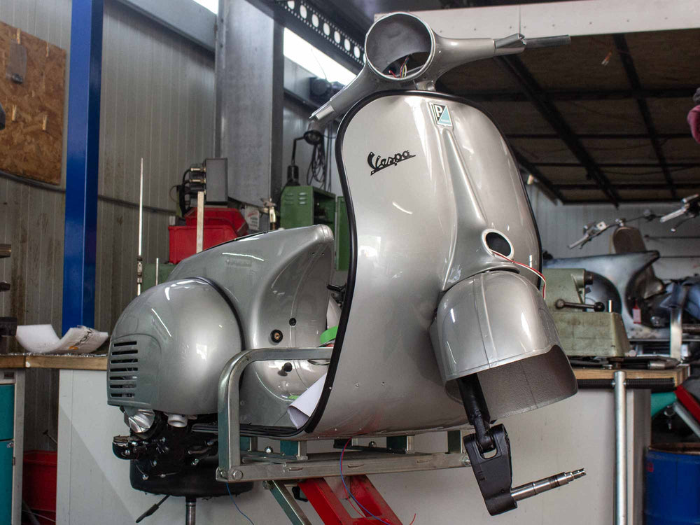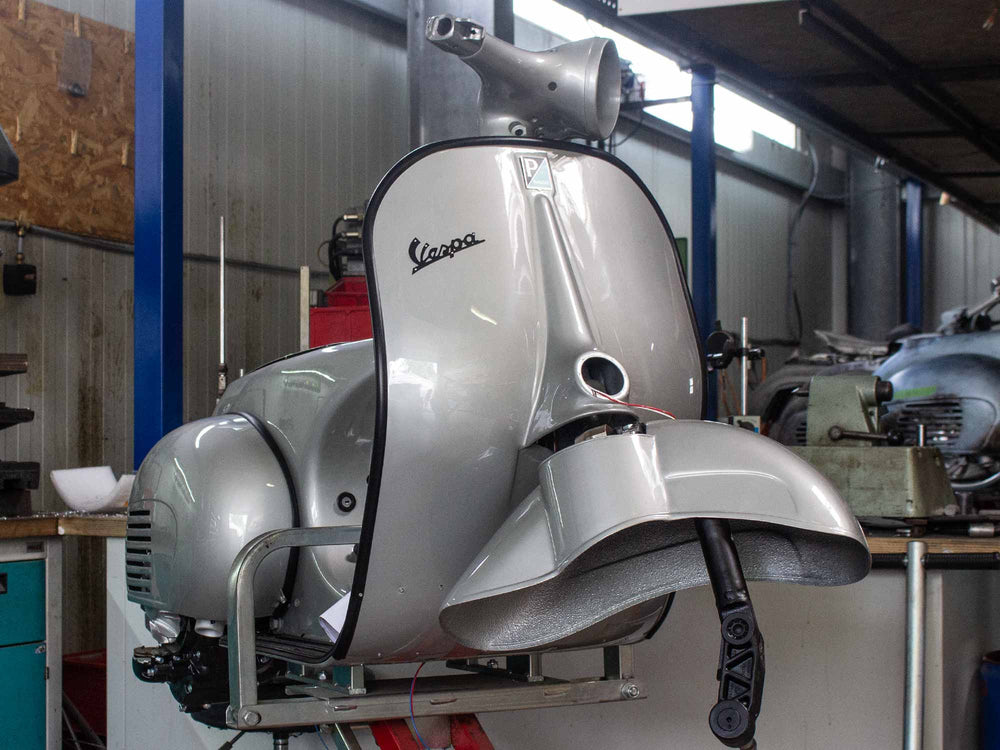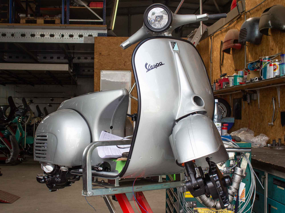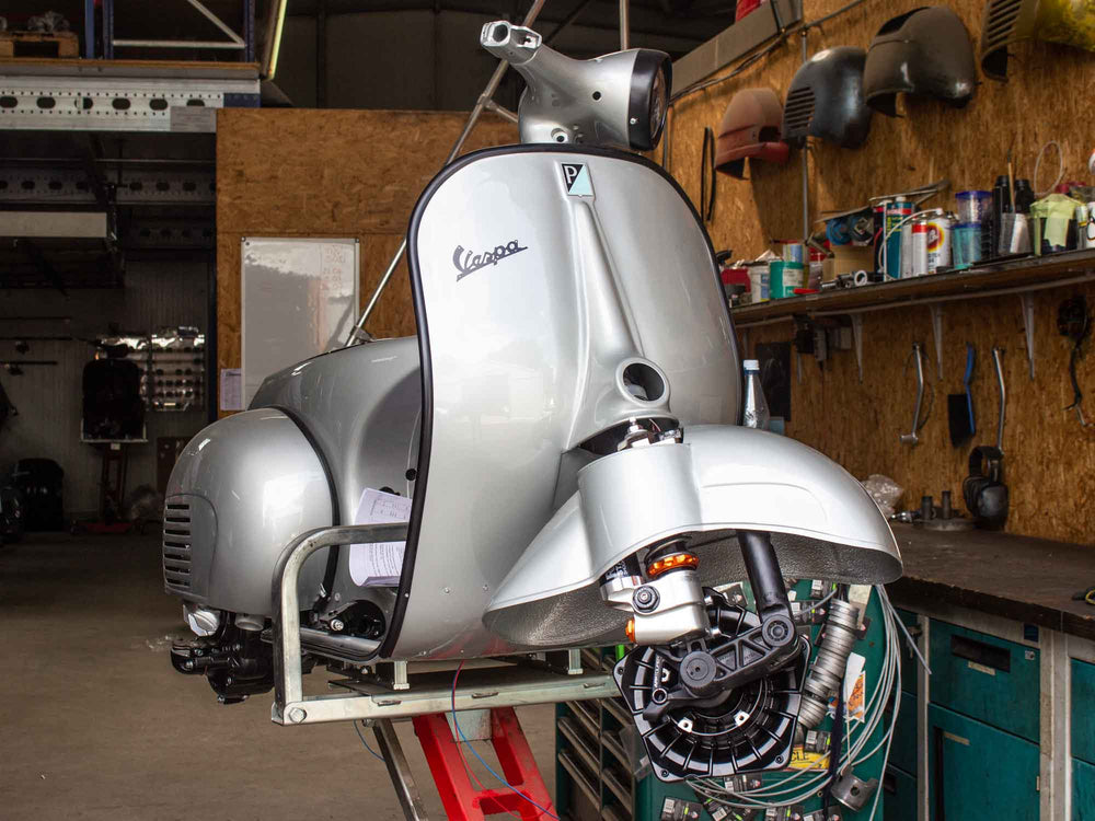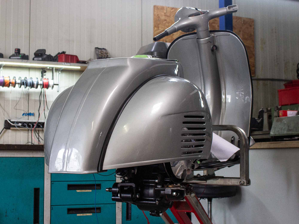 Superlow Series Custom Vespa Projekt im VNB classic Style - Lackierung Mercedes Silbergrau Metallic 180.