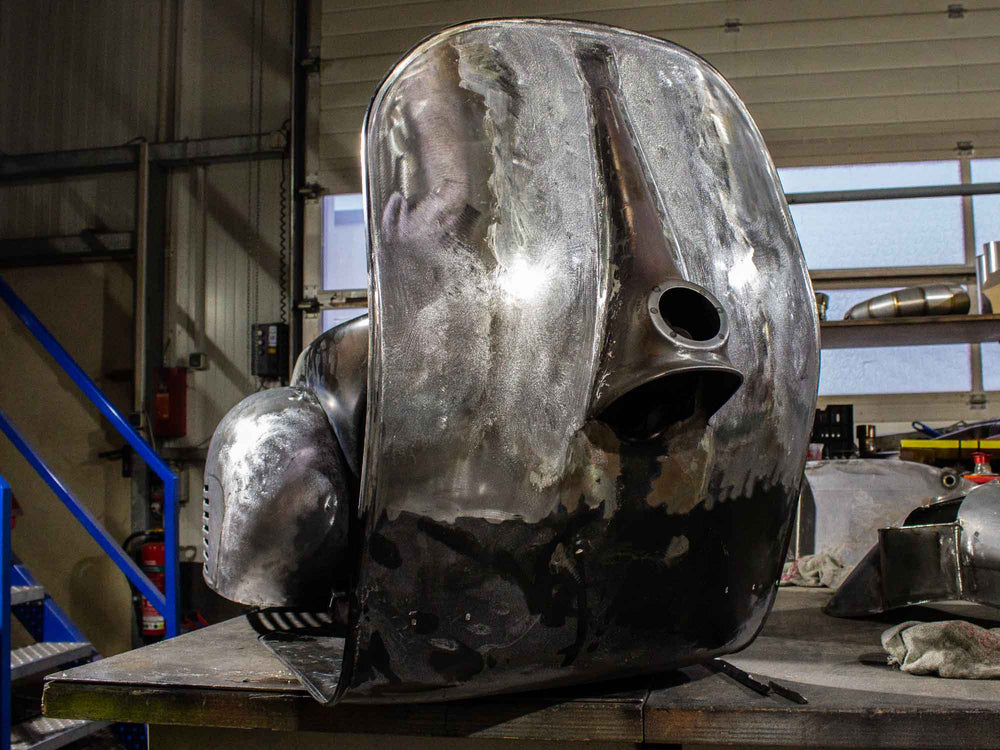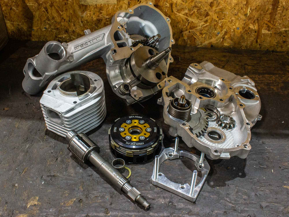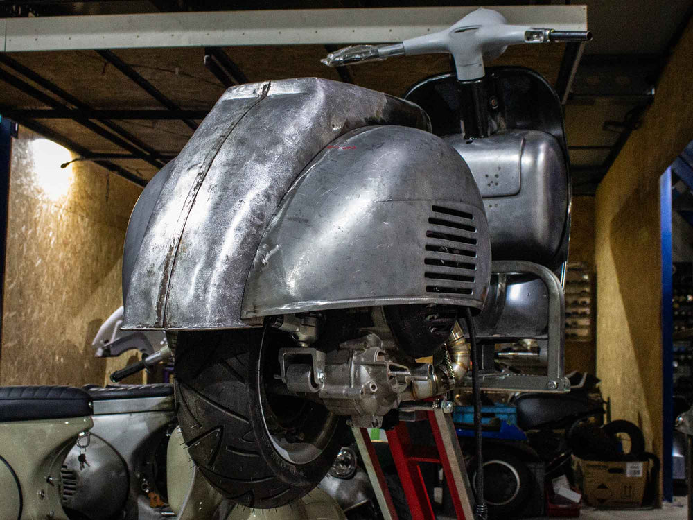 Custom Vespa Projekt aus unserer Superlow Series mit 265ccm BFA Motor und Curley Auspuff - Lackierung Piaggio Blu Medio 213.
